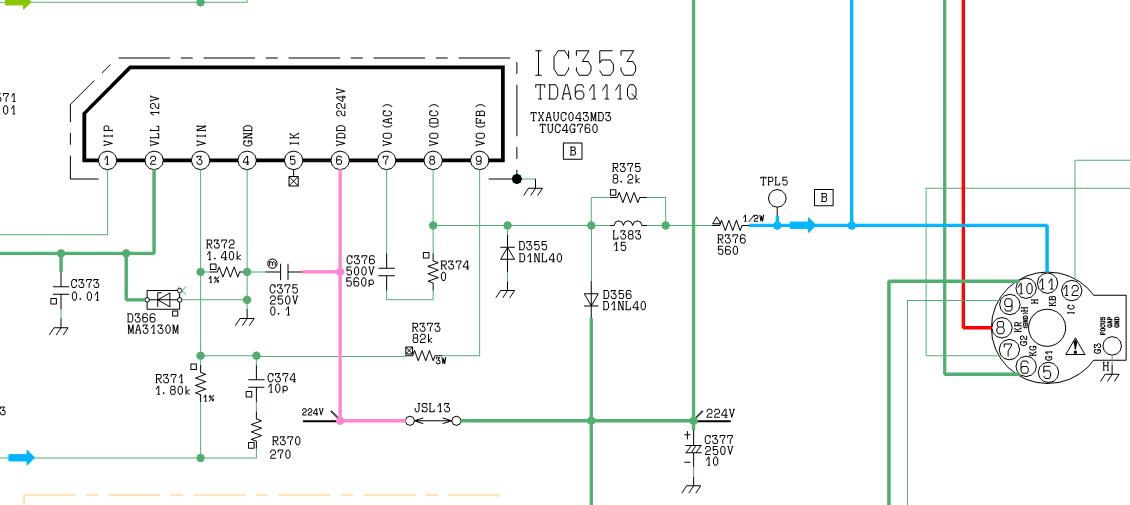 故障现象:松下29P260G,蓝色时有时无,其它颜色正常,通过电视内部程序调节增加B-DRIVE和B-CUTEOFF数值到最高,颜色可基本回到正常。AV或无台底色蓝色虽然偏淡,但还是可以的。但有时颜色跳回正常,颜色就非常蓝,又要调回原数值,调回后一关机开机,颜色又恢复到没有蓝色(几乎没有)。 上述电路图可确认无虚焊,现各位,通过我的描述,各位是否可以确认故障位置,请告知。