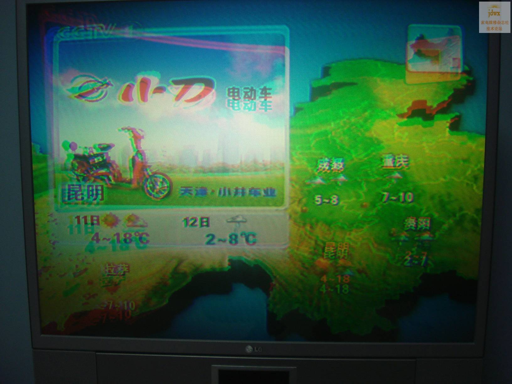 请教高手指点rt-44na13rp重影?内有图片参考,高手们,我家电视一个月了,图像重影,怎么办啊,需要更换什么零件?