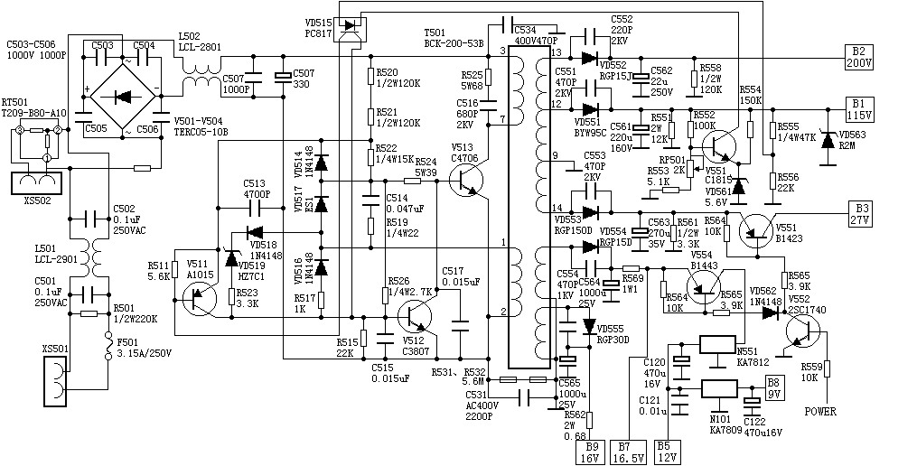 A3机芯开关电源图纸。