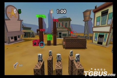 3-2-1:关卡木头沉,所以集中所有爆炸方块炸瘸矩阵一条腿,矩阵自然就崩塌了。还有就是本关开始,没有左轮手枪来引爆炸弹了,所以一定要有一个炸弹在地上让小牛仔来引爆。