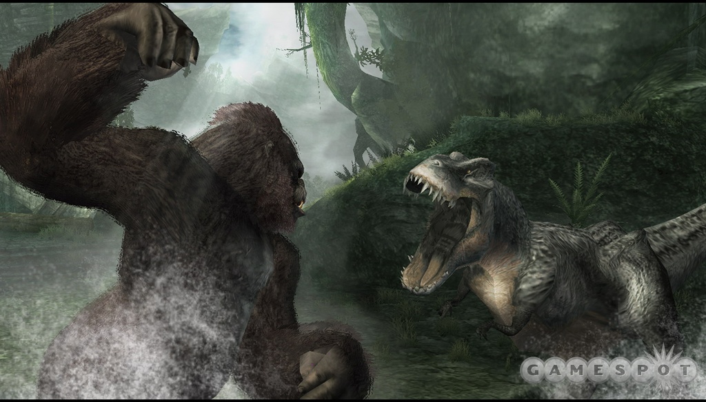 游戏中的两个人物,两个视角,各有各的乐趣,玩家扮演杰克·迪瑞克时,可以准确避开尖锐的长矛或是接住它,你也可以用力的投掷给敌人,但由于没有足够的力量,对抗恐怖的怪兽,常常会狼狈的夺路而逃,一不小心,被怪兽击中,你会暂时丧失方向知觉和听觉,眼前所有的事物都会变红扭曲,周遭的一切声音都是嗡嗡声,等上一会你才会恢复正常,而且虽然你有同伴,但是相当于没有,有时当你面对霸王龙的攻击,你一人拿枪射击,你的摄影家朋友就忙着拍摄恐龙的照片,根本无暇顾忌其他,更提不上帮你,甚至有时候还需要你拿武器击退怪兽,好让他们顺利的打开门逃生。但当玩家饰演金刚时,则显得轻松许多,因此金刚这个角色相对而言,可玩性也更大。金刚的力量是强势的,在同恐龙的战斗中,它常常使用冲撞,捶地就可将恐龙撩翻在地,游戏还巧妙利用了金刚猩猩的身份,设计了许多精彩的动作,例如:金刚不仅具有超强的跳跃能力,还有着倒挂峭壁、岩石,顺着藤蔓攀爬、来回摆荡的本事。游戏也安排了一些比较暴力的场景,譬如安妮逃到霸王龙的巢穴,金刚前去营救,在击倒最后一只霸王龙之后,金刚用爪子将它撕成碎片。为了使玩家能够真正的感受到游戏拥有电影化的体验,彼得·杰克逊不仅非常关注游戏的开发进度,甚至还要求电影摄制组的相关人员都要玩上一遍Beta版,他认为,“制作游戏和拍电影极为类似,游戏也特别关注故事的叙述,镜头调度和场景转换在电影和交互游戏中都成为必要手段。”不仅是电影版翻拍时在各个方面或扩展都处理的细致入微,在游戏中,对于细节的刻画也非常的到位。另外,游戏的配音工作由电影中的相关演员完成,如果你自新的聆听,甚至当巨大的古生物恐龙即将现身的时候,你都可以清晰的听到它奔跑时连续的喘息声,这将会使游戏可玩性将大大的提高。