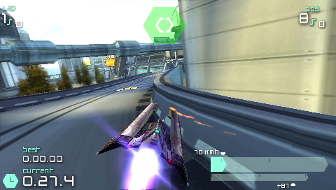 在玩家们都在期待《反重力赛车》新作《反重力赛车:脉搏(WipEout Pulse)》最新游戏视频首次与玩家见面。7个新游戏模式,24个新赛道,大量未来式的飞船和破坏武器,新增的训练部分,8人同玩的乐趣都将在《反重力赛车:脉搏》中展现给喜欢反重力赛车系列的玩家。从新公开的图片看,本作比前作在画面上精致很多,物体的边缘基本看不到锯齿。相信更为精细的画面将会为玩家带来更完美的游戏享受!本作预定于2007年9月底发售,喜欢的玩家请不要错过本游戏。