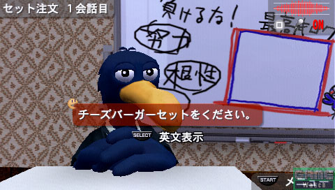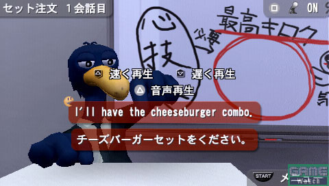 在启动本作的情况下对着麦克风说单词,画面中的鹈鹕“马科斯”会帮助玩家翻译成设定的国家语音,这是一款应用《TALKMAN》系统的英语会话学习软件。