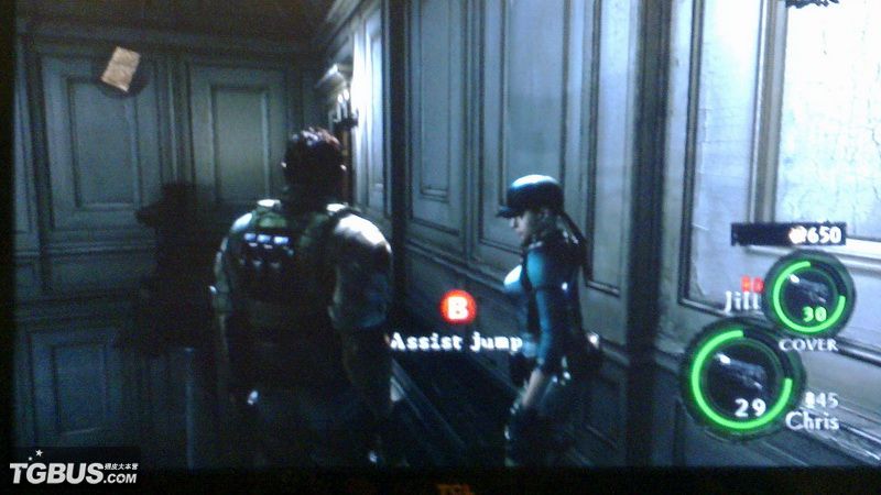 6、这里让jill跳到对面去,jill会取得武器(好像是随机的。我一次拿到了散弹枪,第二次拿到的是狙击步枪)