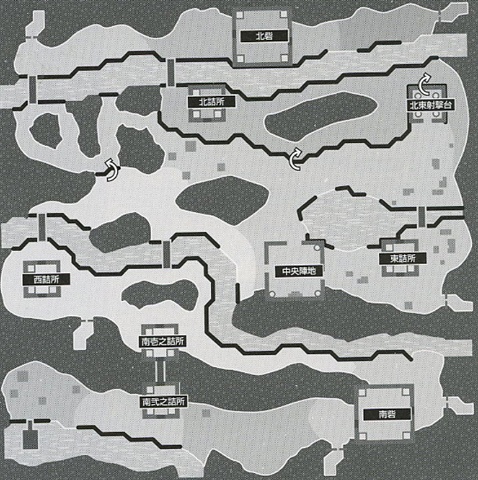 图注:图上有箭头的地方表示有高低差,可以进行跳下(爬上)城墙、游泳(上陆)等操作。